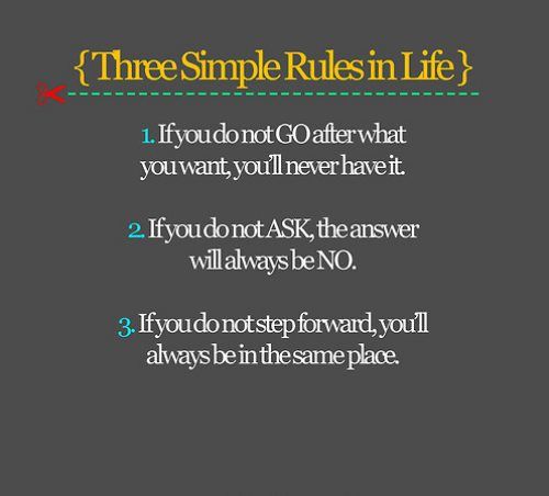 Are there only three simple rules in life? Is life really that straightforward and uncomplicated? I hardly think so, but these three rules command us to take action and to be in charge of our own lives. It’s a rather egocentric outlook on life, but we all know that thinking about things doesn’t make them happen and that the best intentions are often times just not good enough. Being proactive on all fronts of our lives pushes us to be better and helps us to strive towards the lives we want. After all is said and done, we can only blame ourselves if our lives didn’t evolve the way we’d hoped.