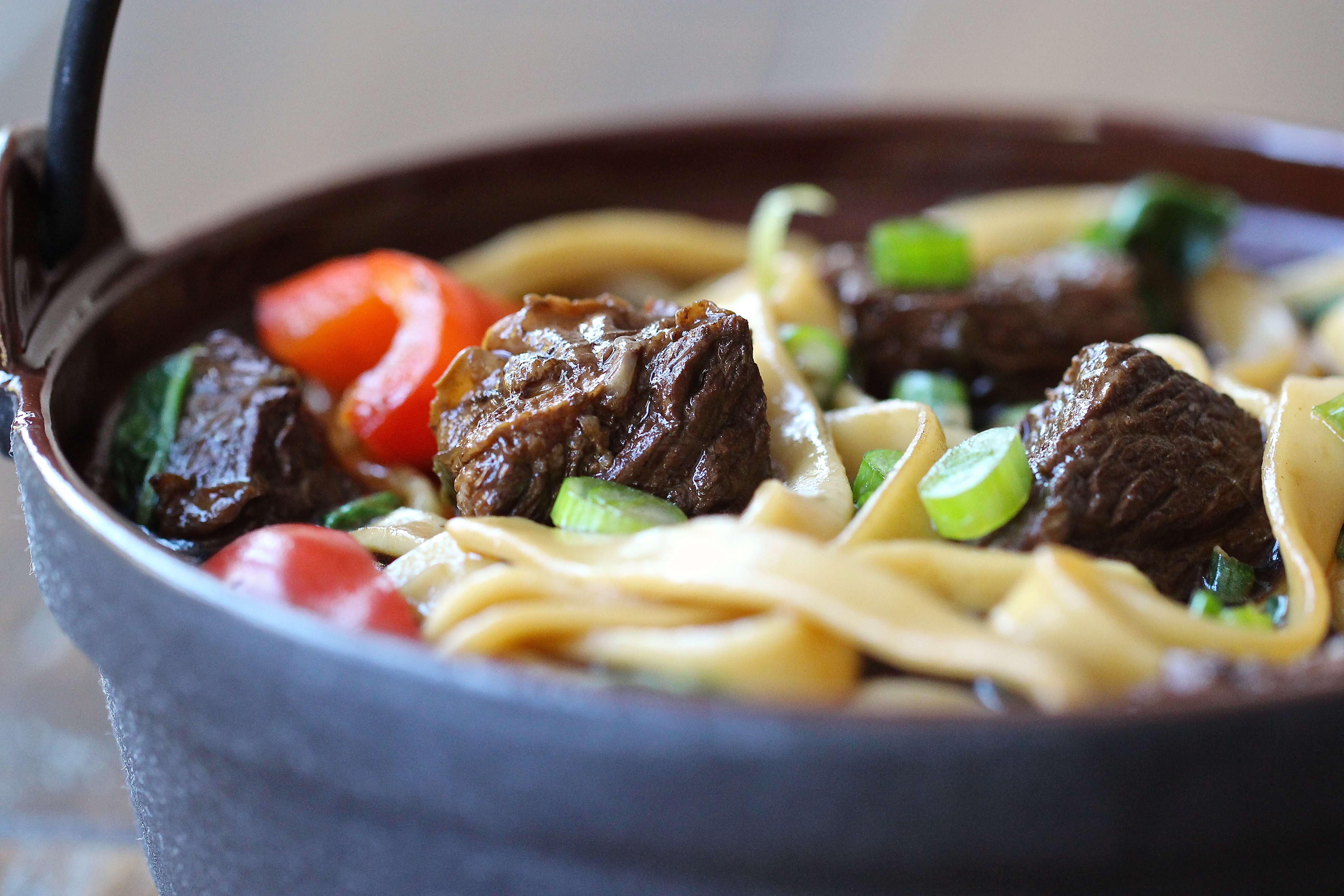 2. Although the bacon starts off crispy, it does not stay that way after soaking in the sauce. It does, however, lend a nice chewy texture to the dish.